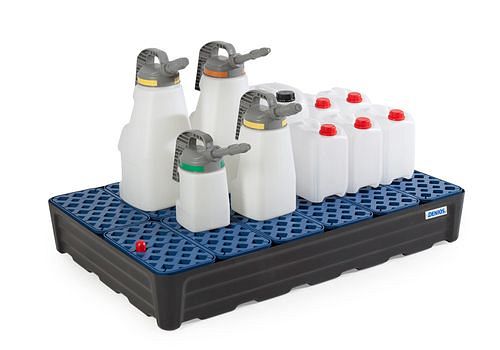Produktmerkmale: Lagerkapazität: Kleingebinde, Gitterrost: Kunststoff, Auffangvolumen (l): 120, Breite Außen (mm): 1170, Tiefe Außen (mm): 785, Höhe Außen (mm): 180, Traglast gesamt (kg): 300, Marke: DENIOS pro-line9.