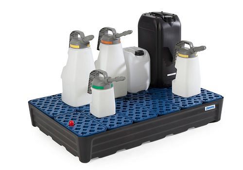 Kleingebindewanne pro-line aus Polyethylen (PE), mit Gitterrost, 120 Liter, 1170x785x180, Optimal für die Nutzung im unmittelbaren Arbeitsumfeld. Lagern Sie Gefahrstoffe gesetzeskonform direkt am Einsatzort, Aus chemisch hochbeständigem Polyethylen, Langfristiger Korrosionsschutz auch bei der Lagerung von aggressiven Flüssigkeiten, Leicht zu reinigen, mit stabilem, herausnehmbarem Kunststoff-Gitterrost, serienmäßig inklusive Leckage-Anzeige in Warnfarbe rot, Maßlich auf Euro- und Chemiepaletten abgestimmt.