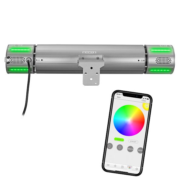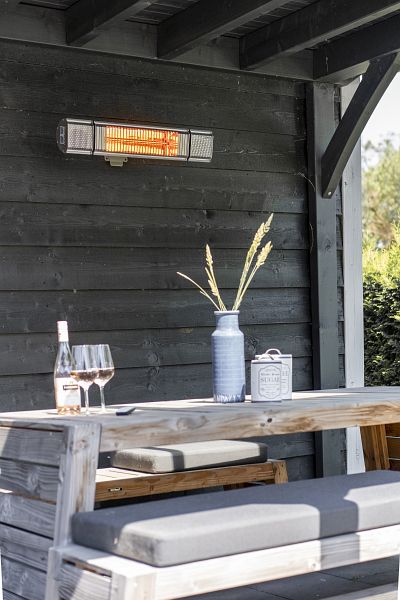Der Eurom Heat and Beat ist eine einzigartige Terrassenheizung mit 2000 Watt. Erstens ist es möglich, Musik über die eingebauten Lautsprecher (2 x 3 Zoll – 3 Watt) abzuspielen. Dazu ist lediglich eine Bluetooth-Verbindung zum Telefon erforderlich. Zweitens verfügt der Heat and Beat über integrierte LED-Leuchten, die die Atmosphäre erheblich verbessern. Die Bedienung der Lichter und der Heizung kann über die Fernbedienung oder mit einem Smartphone erfolgen. Wenn Sie nur die Eurom Smart App herunterladen, kann jedes Smartphone als Fernbedienung verwendet werden. Das Tolle an der App ist, dass die Wärme stufenlos betrieben werden kann. Darüber hinaus strahlt die Golden Amber-Lampe wenig Licht aus, bietet aber wunderbare Wärme. The Heat and Beat sorgen daher für die perfekte Atmosphäre auf der Terrasse.
