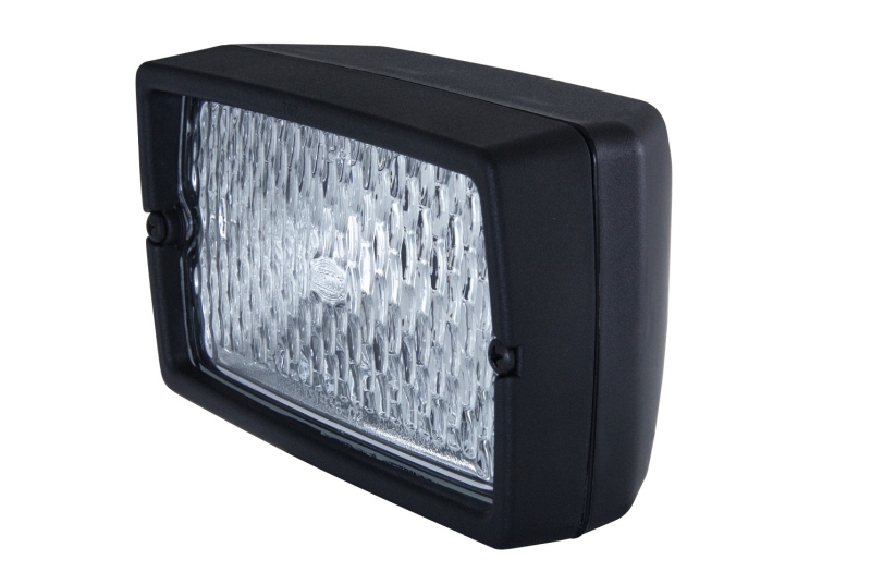 - Das schwarze Gehäuse dieses robusten Arbeitsscheinwerfers besteht aus glasfaserverstärktem, säure-und korrosionsbeständigem Kunststoff.