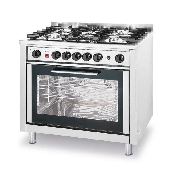 Hendi Gasherd - 5 Brenner mit Elektroofen, Edelstahl, 225707, 8711369225707