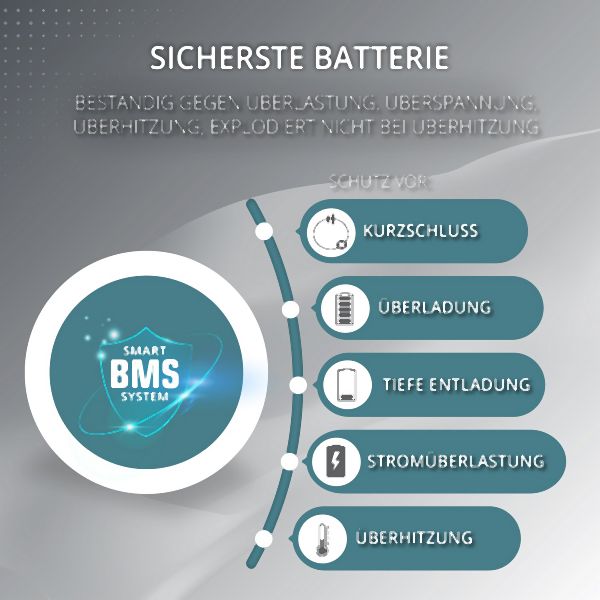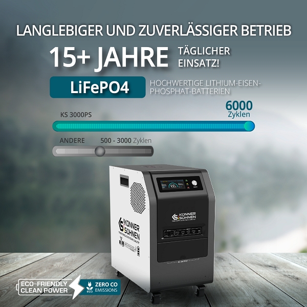 - Batterietyp: LiFePO (Lithium-Eisenphosphat-Batterie)