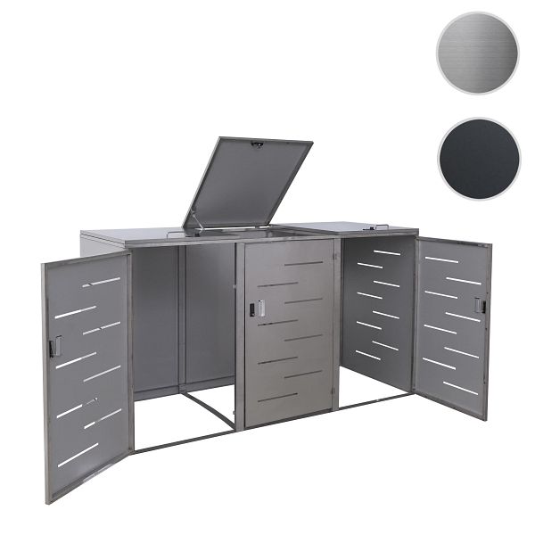 Mendler 3er-Mülltonnenverkleidung HWC-E83, Mülltonnenbox Mülltonnenabdeckung, erweiterbar 108x61x76cm, Edelstahl 68kg, 68813+68811+68812, 4057651356044