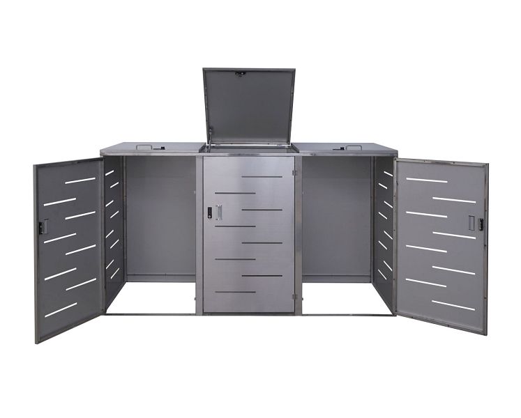 Mendler 3er-Mülltonnenverkleidung HWC-E83, Mülltonnenbox Mülltonnenabdeckung, erweiterbar 108x61x76cm, Edelstahl 68kg, 68813+68811+68812
