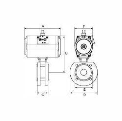 Kompaktflansch-Kugelhahn, pneumat. Stellantrieb, doppeltwirkend, ES 1.4408, Betriebstemperatur -20 °C bis 70 C, DN 15, PN max. 40 bar. 2-Wege-Kompaktflansch-Kugelhahn, voller Durchgang. Pneumatischer Schwenkantrieb in doppelt- oder einfachwirkender Ausführung und integriertem Stellungsanzeiger.