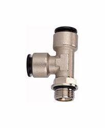 T-Steckverschraubung click-clock, drehbar, G 1/8 a, für Schlauch-Außen-Ø 4 mm, Arbeitsdruck max. 16 bar, Messing vernickelt. Die Weiterentwicklung unserer höchst erfolgreichen Schnellsteckverbinder-Serie im Material Messing vernickelt. Die Vorteile der weiterentwickelten Baureihe sind: / wesentlich einfacheres Stecken und Lösen des Schlauches, vielfach wiederholbar / verwendbar auch bei nichtkalibrierten Schläuchen / geeignet für den Vakuumbetrieb