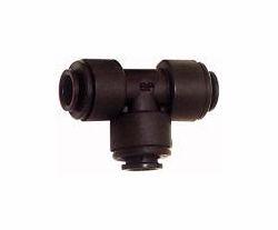 T-Verbinder POM, für Schlauch-Außen-Ø 15 mm, Arbeitsdruck max. 10 bar. Schnellsteckverbinder mit hoher Festigkeit, Zähigkeit, geringem Gewicht, Abriebfestigkeit und großer Schlagfestigkeit für eine Vielzahl von Anwendungen. Zum schnellen Verbinden von Kunststoff- und Metallrohren. Geeignet für Druckluft und Flüssigkeiten, gut resistent gegen viele Chemikalien.