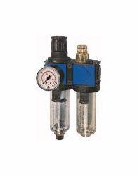 Wartungseinheit 2-tlg. variobloc mit Polycarbonatbehälter, BG 2, G 1, PE max. 16 bar, Mediums-Umgebungstemperatur max. 50 C. Zweiteilige Wartungseinheiten bestehend aus einem vordruckunabhängigen, rücksteuerbaren Membrandruckregler mit Sekundärentlüftung in Verbindung mit einem Zentrifugalabscheider und einem Proportionalöler. Bewährte Serie in modernem Industriedesign, die sich durch einfaches Handling, bequeme Verblockungsmöglichkeit durch neuartige Verbindungsmodule und hervorragende Durchflusswerte auszeichnet.