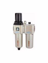 Wartungseinheit 2-tlg. G mit Metallbehälter u. Sichtrohr, 5 m, BG 600, G 3/4, PE max. 10 bar, Regelber. 1,5 - 9 bar, Ablass HA. Zweiteilige Wartungseinheiten, bestehend aus einem vordruckunabhängigen Membrandruckregler mit Sekundärentlüftung in Verbindung mit einem Zentrifugalabscheider und einem Proportionalöler.