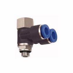 Y-Winkelsteckverschr. Blaue Serie, drehbar, M5 a./i., für Schlauch-Außen-Ø 4 mm, Arbeitsdruck max. 15 bar, Kunststoff/MS vern.. Unsere Schnellsteckverbinder-Serie aus Kunststoff bzw. vernickeltem Messing. Die Teile sind einsetzbar in Verbindung mit Kunststoffschläuchen und Kupferrohren.