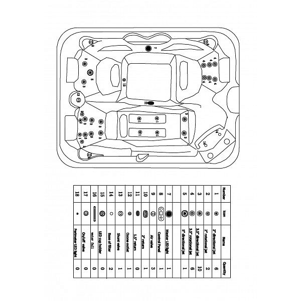 - 2” Massagedüsen: 8