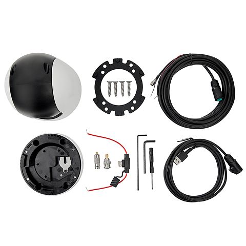 An der Unterseite ist die Kamera mit einem Standard 1/4" Innengewindeanschluss ausgestattet, mit dem du die Nightwave an zahlreichen Stativen und Klemmen befestigen kannst. Die Kamera kann auch kopfüber montiert werden, wobei die Software das angezeigte Bild automatisch um 180 Grad dreht. Die Stromversorgung erfolgt über USB oder über das mitgelieferte Video-Ausgangskabel (12Vdc), das du an das MFD anschließt. Der Blickwinkel der Nightwave kann nur manuell in der Höhe eingestellt werden.