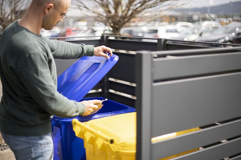 Modern und funktional - die minimalistische Mülltonnenverkleidung Planum von Westmann lässt deine Mülltonnen im Handumdrehen hinter der zeitlosen Konstruktion aus pulverbeschichtetem Stahl verschwinden.